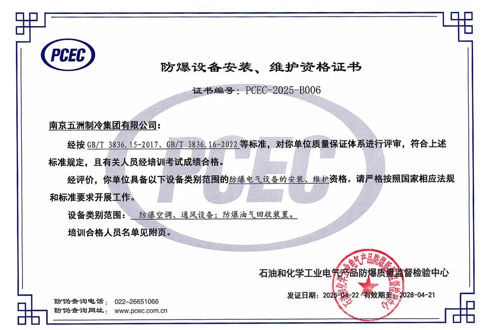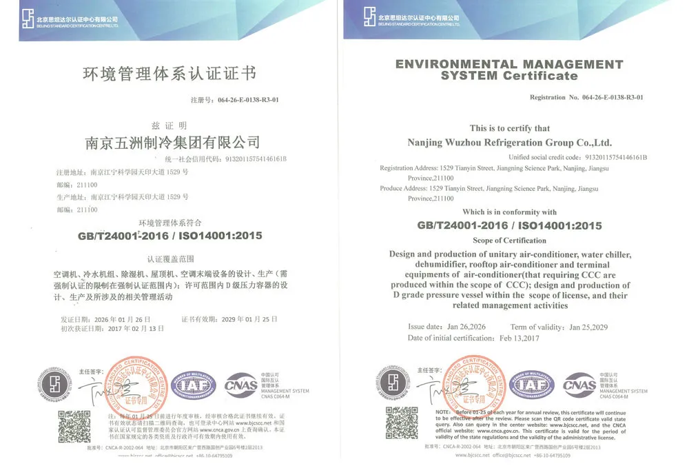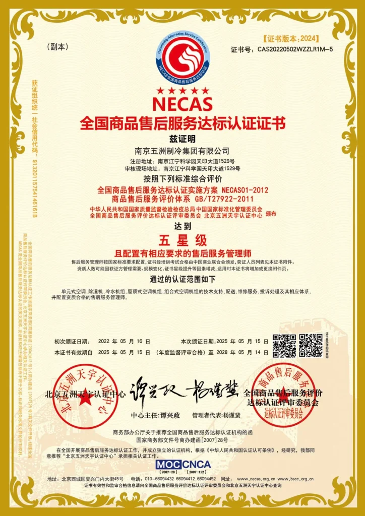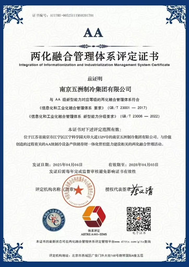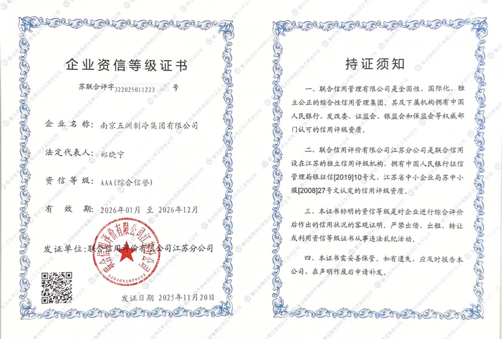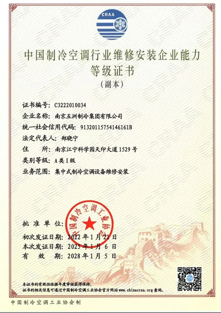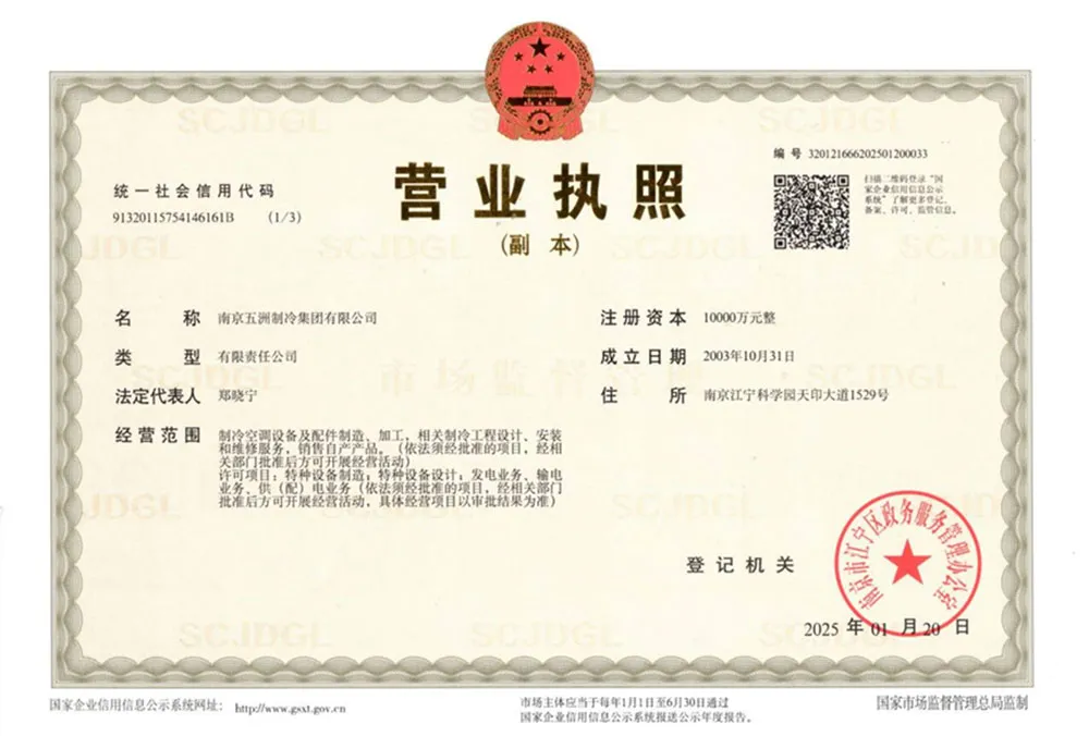 ООО Нанкин Учжоу Холодильное Оборудование групп — профессиональная компания в области холодильного и климатического оборудования. Основная продукция включает автономные кондиционеры, чиллеры, осушители, крышные кондиционеры и центральные кондиционеры. Предприятие основано в 1958 году и является одним из первых ключевых предприятий китайской отрасли холодильного и климатического оборудования. В настоящее время компания имеет статус национального предприятия-«малого гиганта» (специализированного и инновационного), высокотехнологичного предприятия провинции Цзянсу, а также является постоянным членом совета директоров Китайской ассоциации холодильной и климатической промышленности, членом совета Китайской ассоциации оборонных технологий и постоянным членом совета Нанкинской ассоциации оборонной науки и техники. «Учжоу Холодильное Оборудование» — это современное предприятие холодильной и климатической отрасли, располагающее полным комплексом контрольно-измерительного оборудования, целостной продуктовой линейкой, передовыми технологиями и высоким уровнем сервиса.