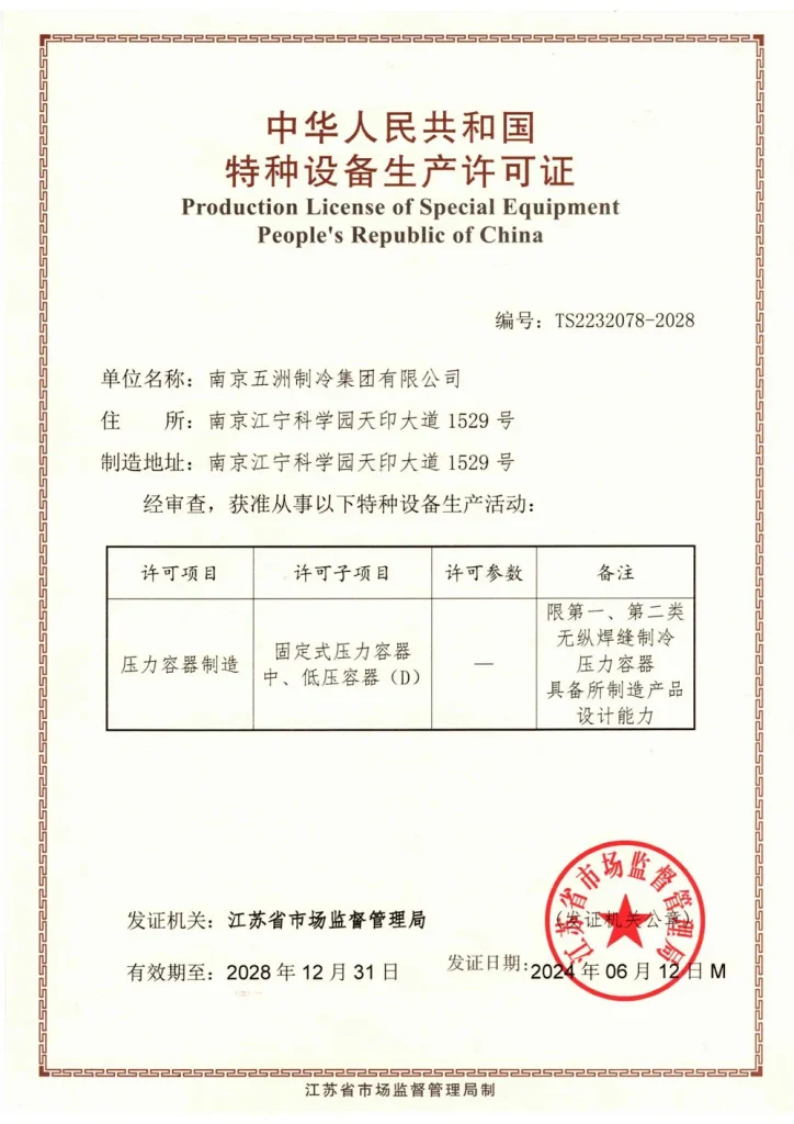 «Учжоу Холодильное Оборудование» занимает территорию площадью 200 000 м², производственные площади составляют 100 000 м², общая стоимость активов достигает 500 млн юаней. На предприятии работают более 500 сотрудников, включая 200 профильных специалистов и технических работников. Ежегодный объём производства и операционной деятельности составляет 500 млн юаней. Компания превратилась в современное предприятие холодильной и климатической отрасли, располагающее полным комплексом контрольно-измерительного оборудования, целостной продуктовой линейкой, передовыми технологиями и высоким уровнем сервиса.